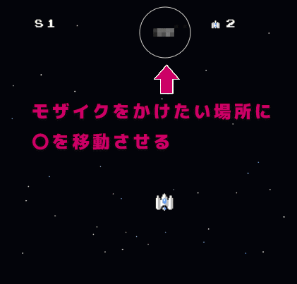 モザイクをかけたい位置に〇を移動します。