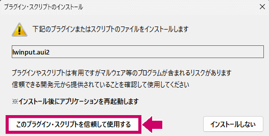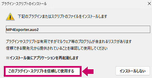❺ 確認画面が表示されるので、「このプラグイン~使用する」を選択。