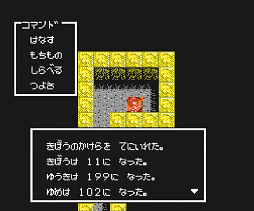 開けると「きぼうのかけら」でした。洞窟探索、開始5秒でレベルアップです。