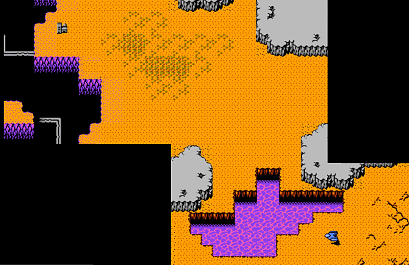 ポテトタウンに立ち寄り、さらにそこから北西(左へ移動・上へ移動)すると、武器庫への行き来を阻む沼(これが沼?毒の湖じゃなくて?)があります。
