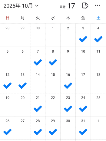 カレンダーをチェックで埋めていくこと、そしてチェックで埋まったカレンダーを見ることが、さらなるモチベーションアップにつながるのがいい!