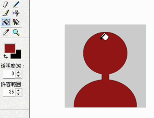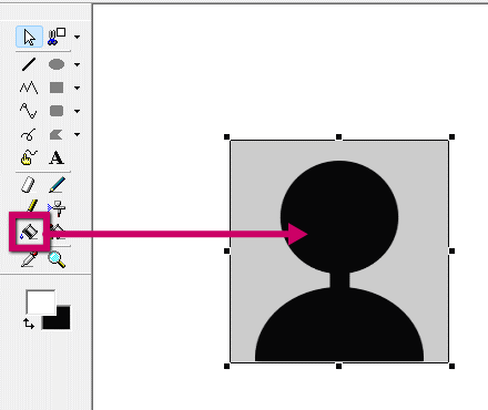 左側の四角で囲った、ペンキ缶のようなアイコンは「塗りつぶし」です。これを使って赤く塗ります。