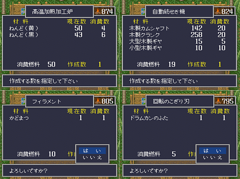 次々と完成するアイテム