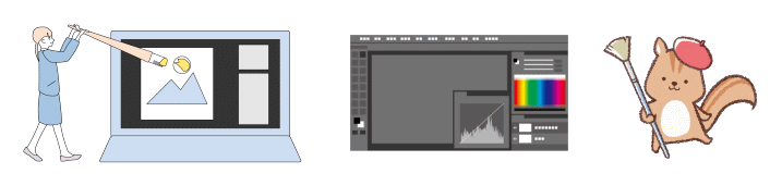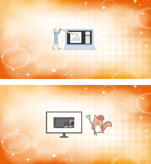 女性がいるイラストは1枚だけで使えそうですね。画像処理画面とリスは一緒に使いましょう。