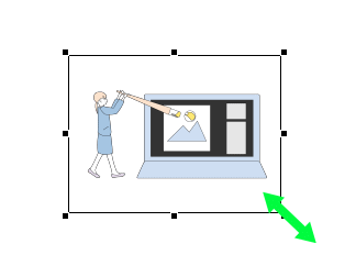 また、画像をクリックしてマウスでサイズ調節もできます。