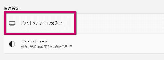 ❹ 関連設定にある「デスクトップアイコンの設定」を選択。