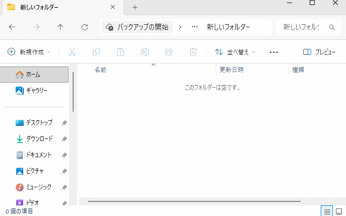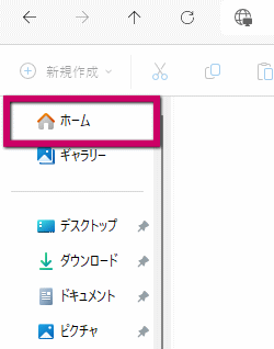 「エクスプローラー」を開くか、もしくは何でもいいのでファイルを開き、左メニューの一番上にある「ホーム」を選択します。
