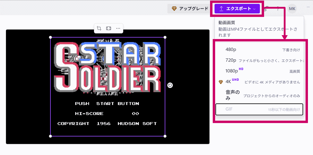 ❾ 動画の向きを正しい位置にしたら、右上のエクスポートを押します。