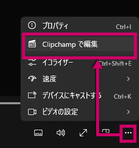 ❹ 3点リーダー →「Clipchampで編集」を選択。