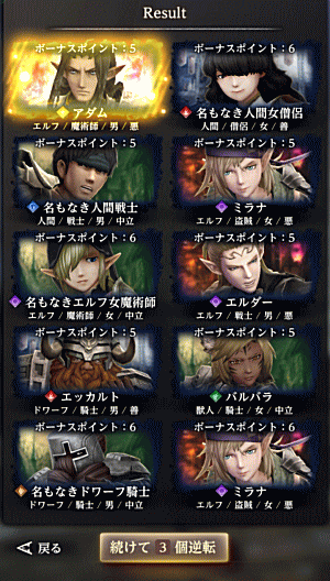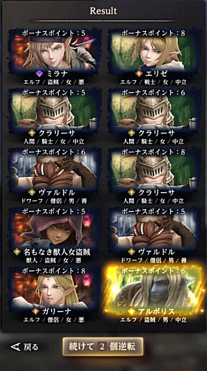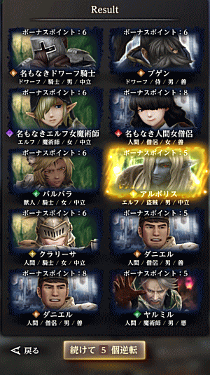 というわけで、アルボリス登場は10連ガチャ2回目でした。……が、検証は続きます(偶然の0.5人かもしれない)。