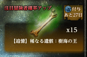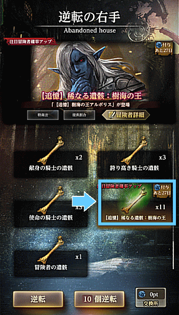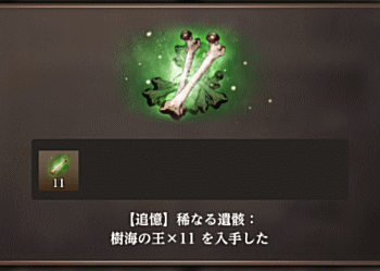 では、今回の軍資金である「オルグの貴石10,000個」のうち、まず2,000個を使用して『【追憶】稀なる遺骸:樹海の王×11』を購入します。