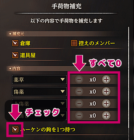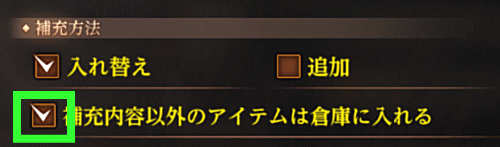 ただし “補充内容以外のアイテムは倉庫に入れる” に必ずチェックを入れましょう!
