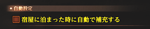 “宿屋に泊まった時に自動で補充する” は、状況に応じて使い分けます。