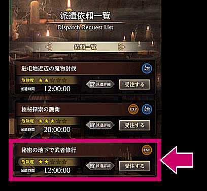 ……が、そこから先のレベル上げ、あるいは地道にやっていられない人に断然オススメなのが「派遣」である。
